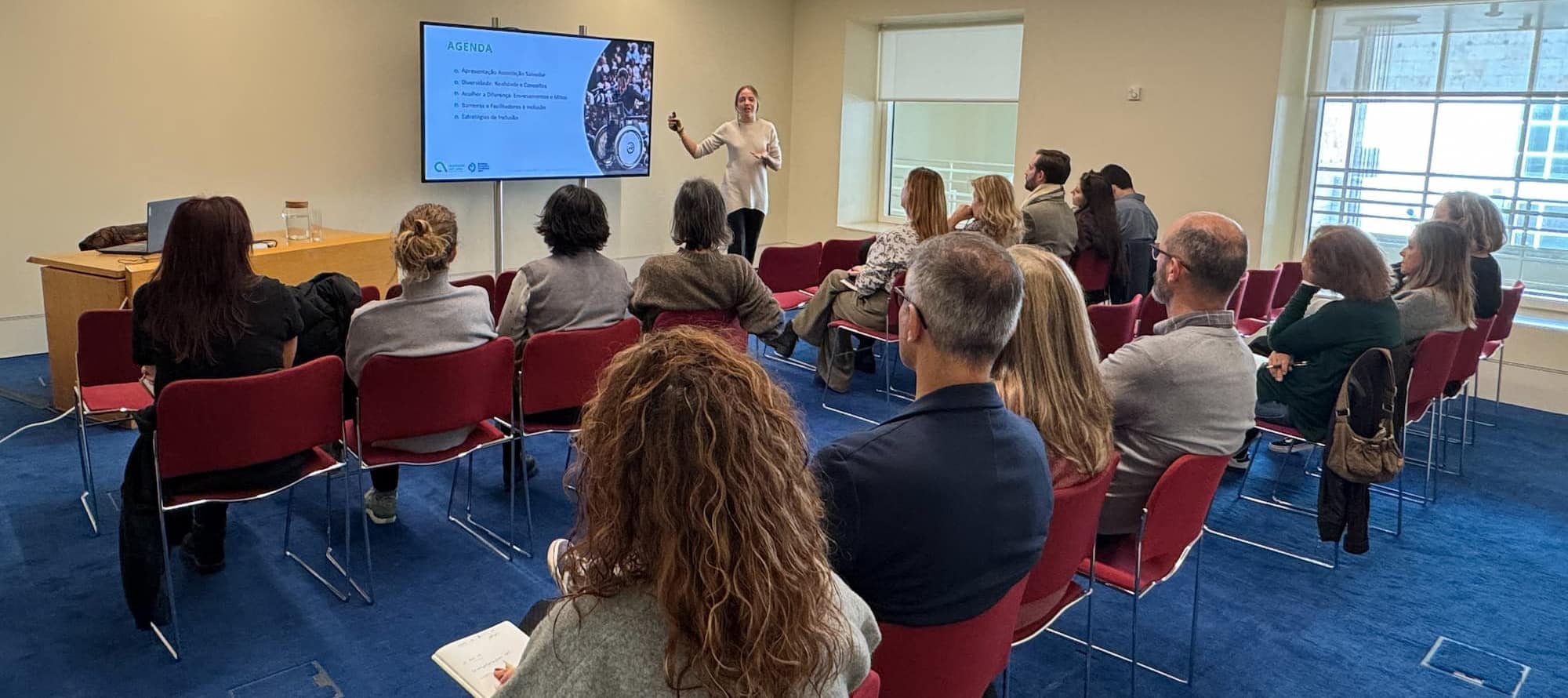 Colaboradores de várias equipas — desde a Comunicação às Artes Performativas, passando pelo Museu e pelos Recursos Humanos — participaram numa sessão teórico-prática que incluiu um peddy-paper inclusivo, a apresentação e discussão de estudos de caso e uma atualização sobre os princípios da linguagem inclusiva.