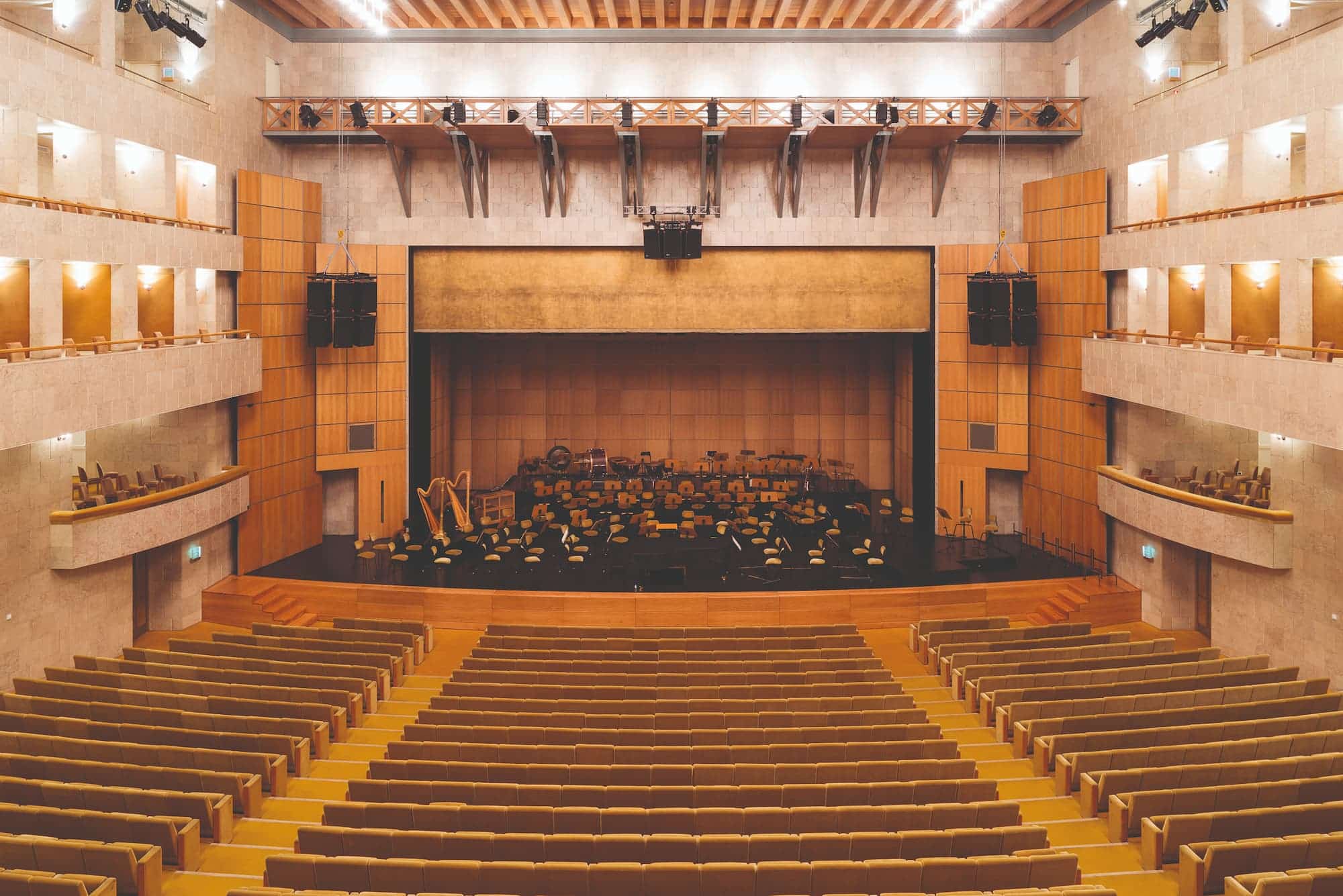 The Grande Auditório is an Italian type hall prepared to host major artistic productions, dance performances, music, theatre, opera, cinema, commercial events and conferences.