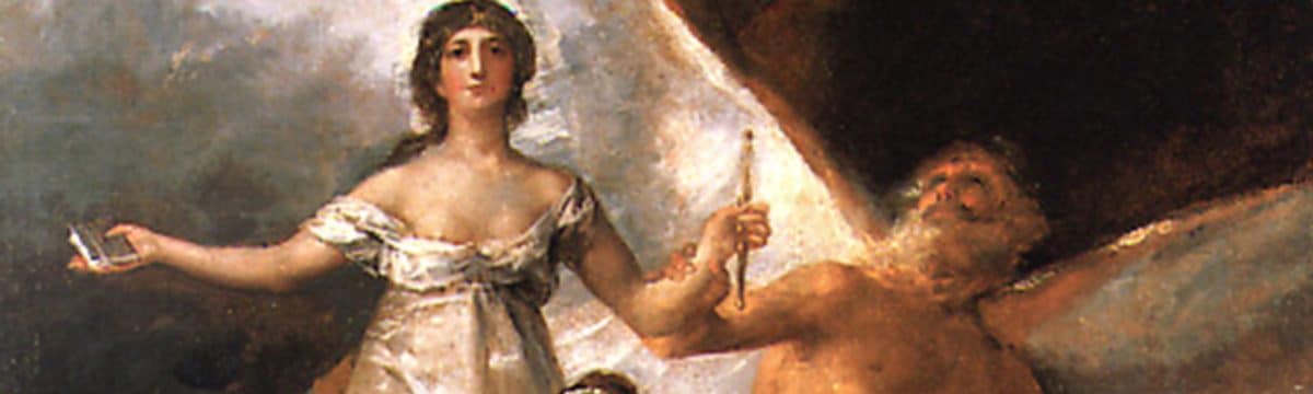 Imagem (c) Francisco Goya (1746-1828). «La Verdade, la Historia y el Tiempo» (1797-1800). Óleo sobre tela. 294 x 244 cm. Nationalmuseum (Estocolmo, Suécia). Fonte Wikimedia Commons