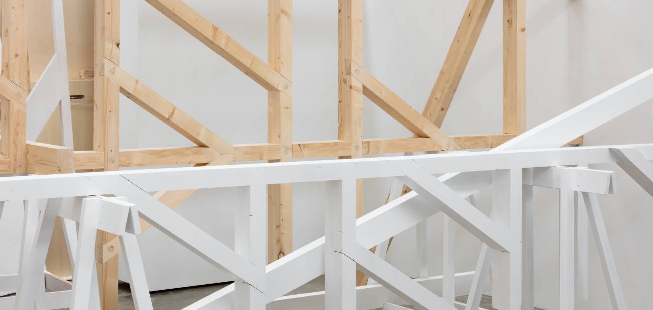 Trata-se de uma grande instalação que encontra novas formas e gera novos diálogos com a arquitetura de cada vez que é apresentada. Partindo de uma estrutura complexa de traves, cavaletes e barrotes que convocam noções de reconstrução do espaço e da sua reconfiguração, a instalação, agora repensada por Fernanda Fragateiro para o espaço do Piso 0 do CCB, ostenta títulos discretamente inscritos de obras que se debruçam sobre e são assinadas por arquitetos e arquitetas que têm constituído referências importantes no percurso da artista. A teia física assim gerada é também uma teia de reflexões sobre o arquitetónico, a cidade, o espaço e a modernidade.