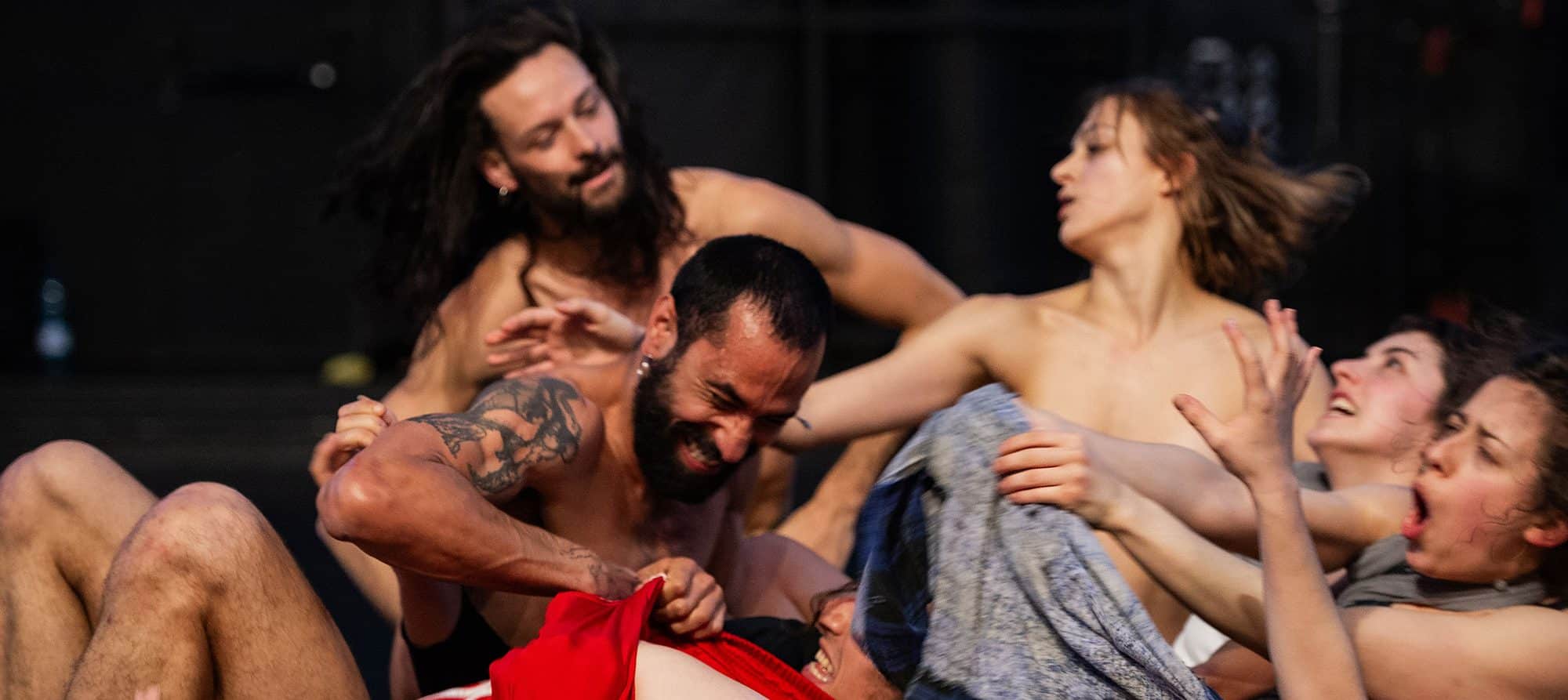 Começámos por isolar um verso de uma canção, como quem isola, em laboratório, uma partícula essencial para iluminar a complexidade do todo: mergulhámos na Inquietação de José Mário Branco e, quando voltámos à tona, todos os sentidos ficaram alerta, em estado de atenção plena, de liberdade absoluta. Decidimos então ir por aí. Em Há qualquer coisa prestes a acontecer, o corpo será o grande signo em cena — uma massa física coletiva, que forjará uma peça coral vigorosa, composta por corpos nus e imagens plásticas, primordiais. Não haverá alusões imediatas a um estado de coisas político, ideológico ou ambiental. Não haverá palavras de ordem ou gritos de alerta. Haverá, isso sim, o confronto com o tempo iminente. Do perigo lá fora (no mundo) às barreiras cá dentro (na nossa cabeça); continuamente vemos novidades e reconfiguramos o entendimento do que nos rodeia e do lugar que ocupamos.