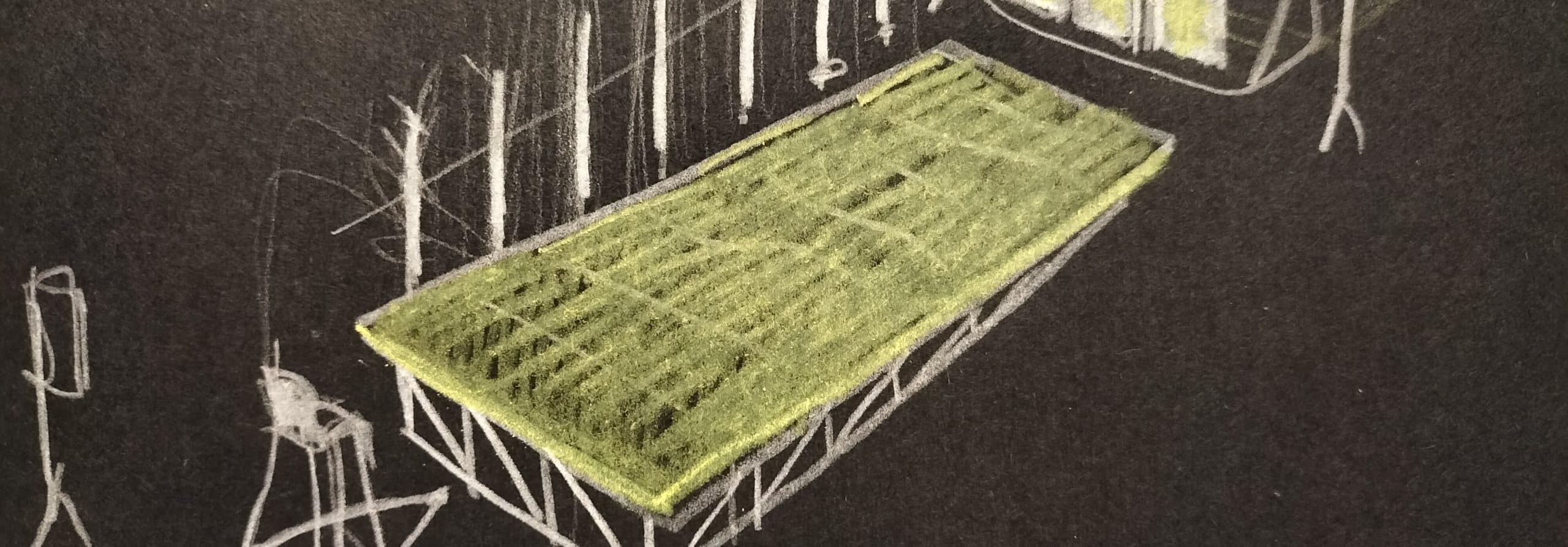 Este dispositivo traz a figura da “plateia”, aqui experimentada e como uma grande Jangada, para o centro da dramaturgia musical explorando plasticamente a “distância entre performer e espectador” enquanto um território “líquido e instável”.