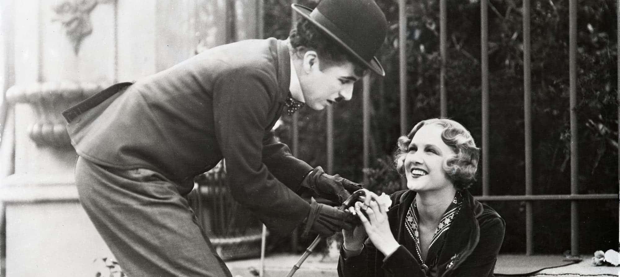 Mais tarde nesse dia, depois de uma série de incidentes com a polícia, jornaleiros insolentes e um alçapão na calçada, ele depara-se com uma vendedora de flores cega. Ele fica comovido com a sua emoção e beleza, enquanto o bater casual da porta de um carro a leva a acreditar que ele deve ser um homem rico.