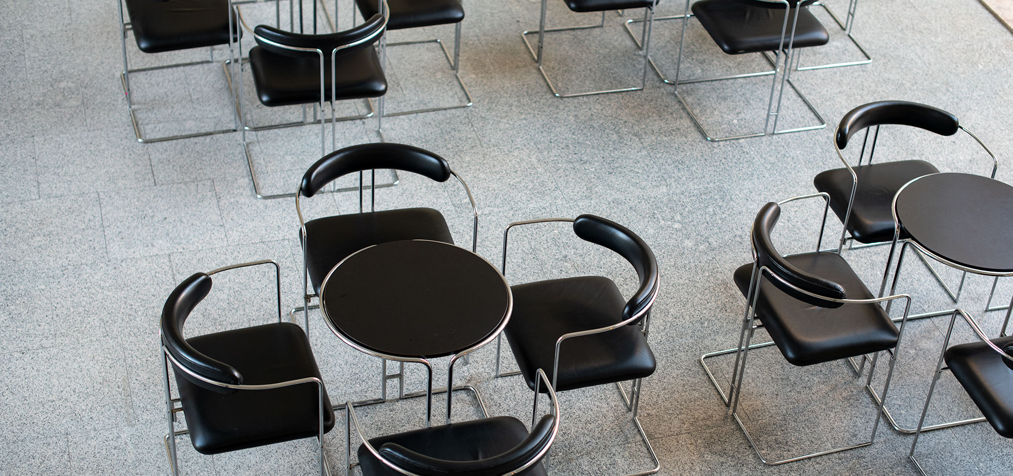 No Foyer Sophia de Mello Breyner Andresen, assim como no Bengaleiro do Grande Auditório, encontram-se cadeiras e mesas Quadratura, originalmente desenhadas para o Laboratório Nacional de Engenharia Civil e, mais tarde, comercializadas pela Metalúrgica da Longra, com linhas mais finas e ligeiras alterações em relação ao modelo original de 1971. Estas peças delimitam um volume de espaço virtual e estabelecem um jogo formal onde se reconhece a relação entre círculos e quadrados. Tornaram-se um dos conjuntos mais icónicos de Daciano da Costa e, em 2022, a cadeira passou a integrar a coleção do Vitra Design Museum.